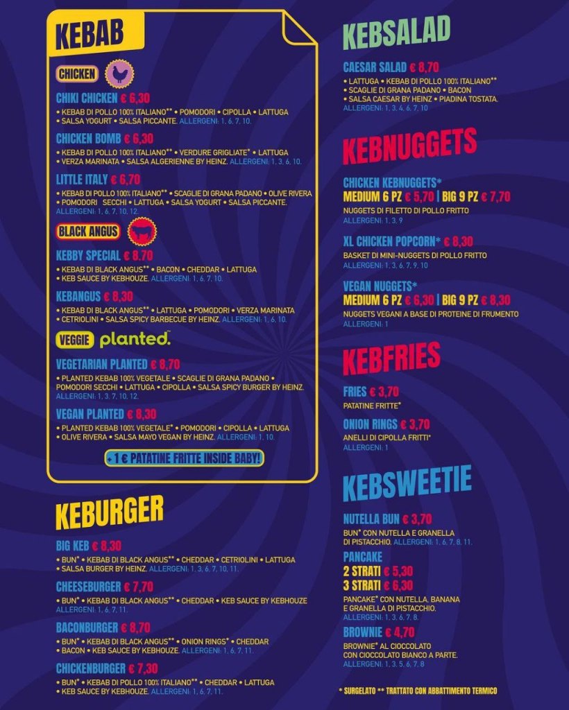 La possibilità di avere il ripieno anche in modalità burger, e poi insalata, nuggets di pollo o vegane, patatine fritte, anelli di cipolla e l’angolo dei dolci.
