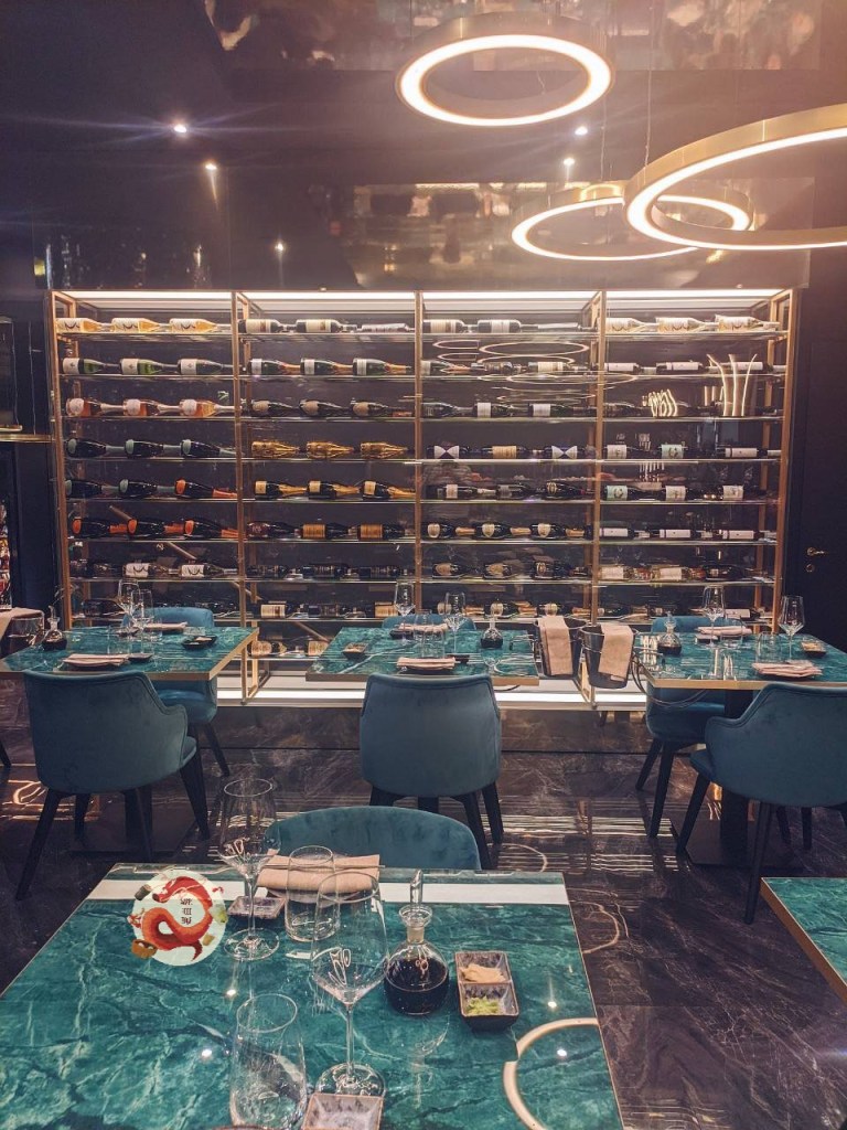 Il locale vi colpirà per il color azzurro che domina la sala, insieme all’oro.