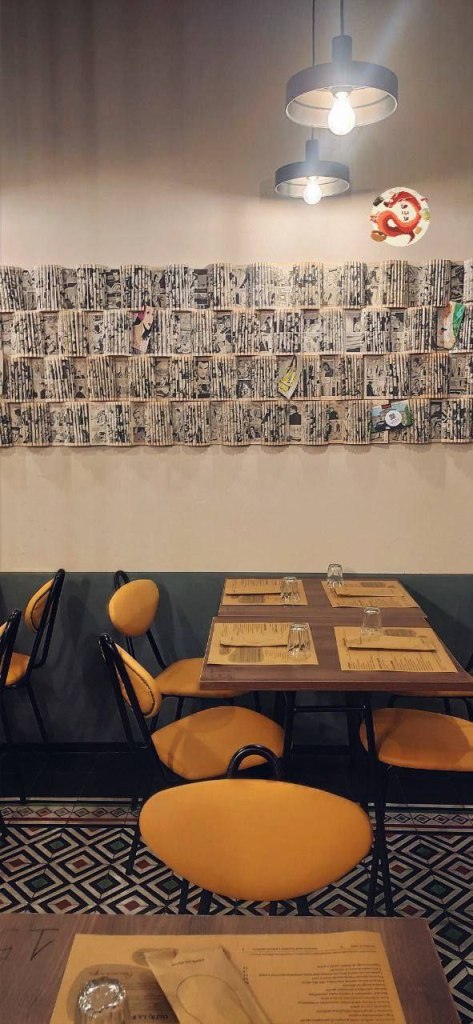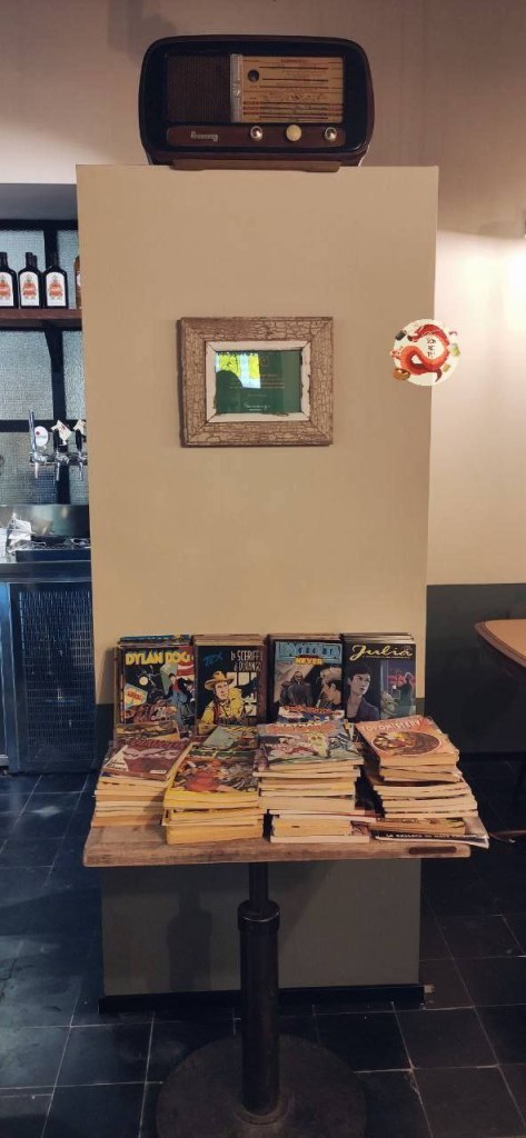 Quindi forte identità, a tavola ma anche negli arredi, caldi e accoglienti con anche un piccolo corner dove poter scambiare fumetti presente all’ingresso.