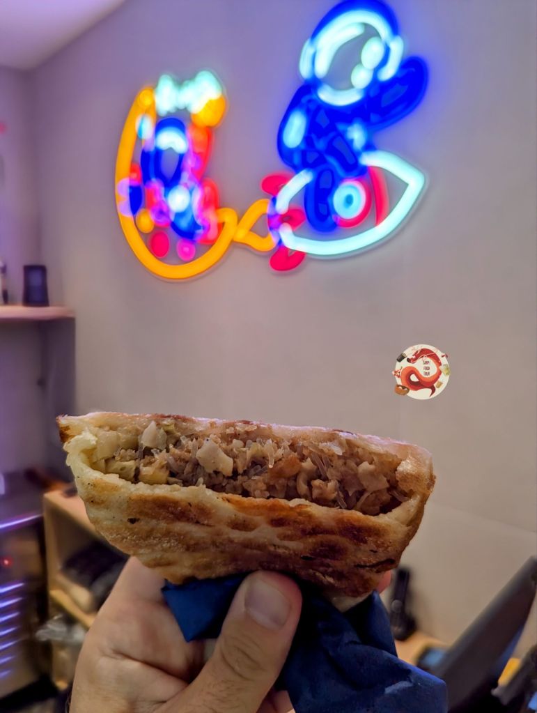 Amo le contaminazioni, la sperimentazione, e questa idea di Daniele mi ha subito convinto. L’impasto è veramente ottimo e la sua esperienza in pizzeria si nota tantissimo. Il ripieno, ad ogni morso, rimane compatto ed è anche di ottima qualità . Da amante del cibo da strada non posso non apprezzare la possibilità di mangiare un panzerotto/calzone dal cuore cinese.